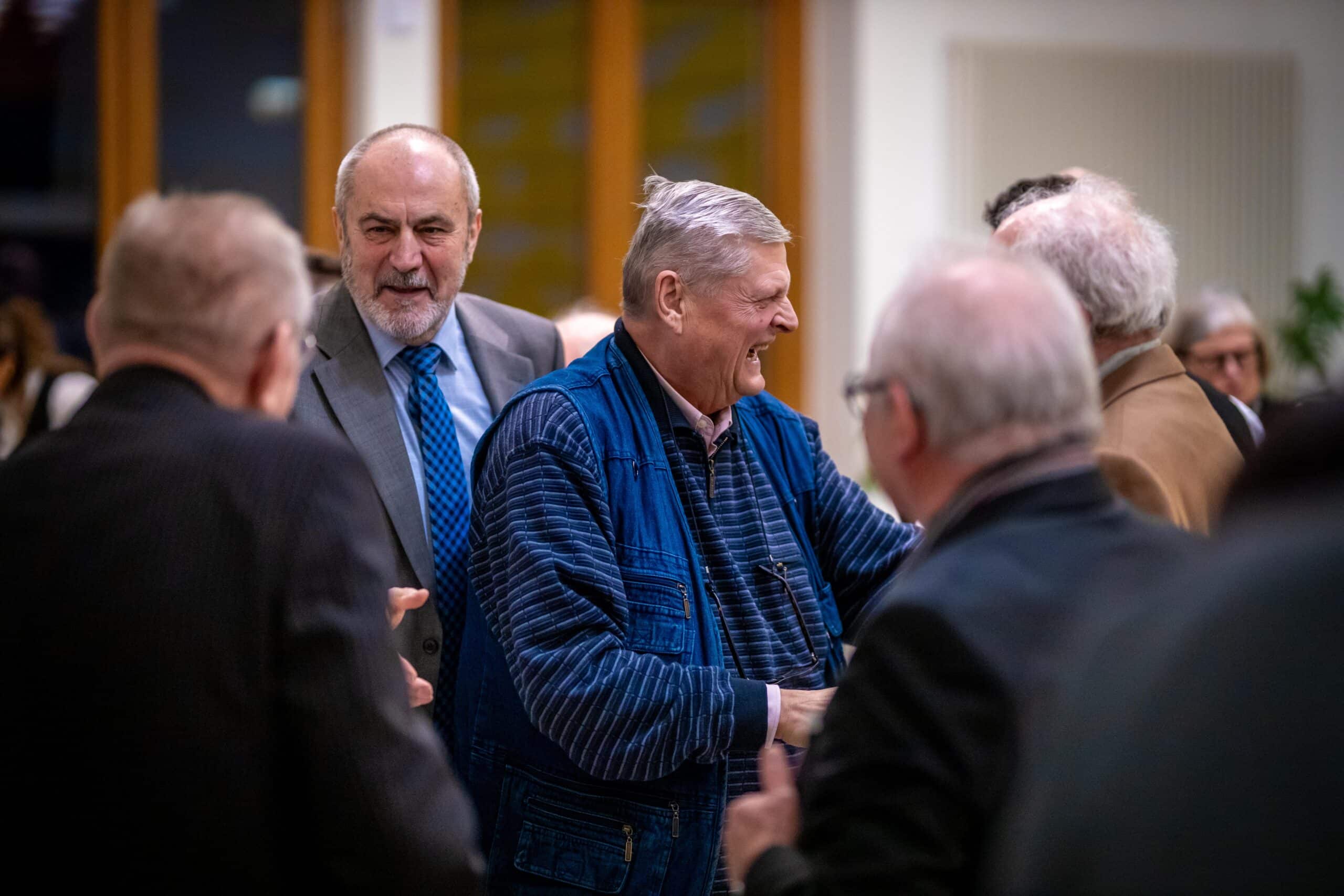 Im Anschluss an die offiziellen Reden bot ein festlicher Stehempfang mit Imbiss und musikalischer Unterhaltung durch ein Quartett des JugendJazzOrchester Saar Gelegenheit zu intensiven Gesprächen. Überall im Saal begegneten sich Menschen, die sich zum Teil seit vielen Jahren nicht mehr gesehen hatten. Die Freude über die Wiedersehen war greifbar – Erinnerungen wurden ausgetauscht, alte Anekdoten aufgewärmt, und manch einer mag sich gefragt haben, wo die Zeit geblieben ist.